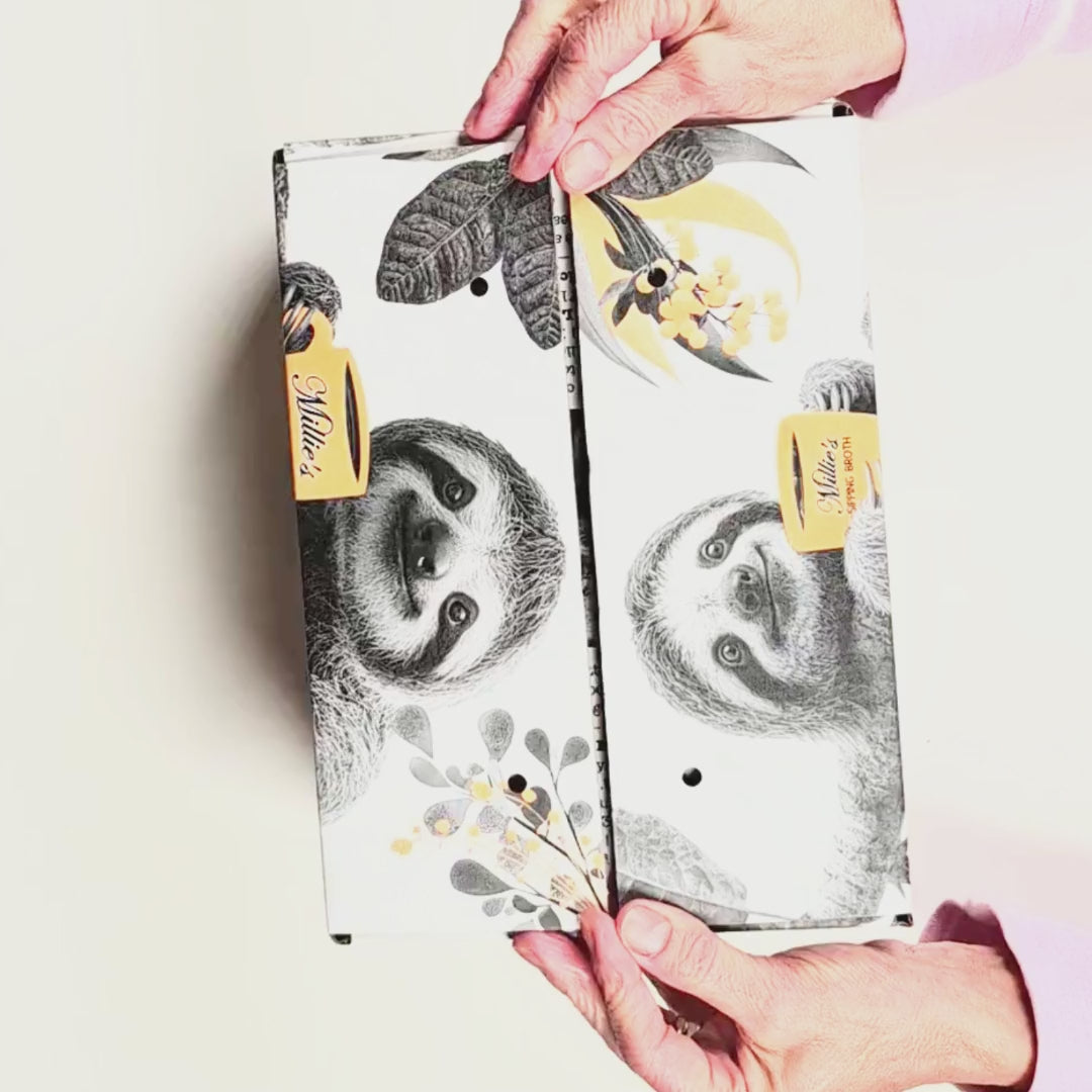 Millie's Delight Pho Sipping Broth is a hearty blend of onions, basil, spicy red peppers & spices. Easy to make fresh every time with just a mug and hot water. FOR A LIMITED TIME- Comes in a re-usable Broth Sloth Box for your stuff!